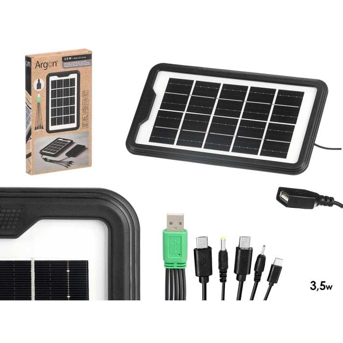 Argon Placa Solar Portatil de 3.5W con USB, Panel Monocristalino, Color Negro, Dimensiones 15.5 x 27 x 2 cm (Set de 12)