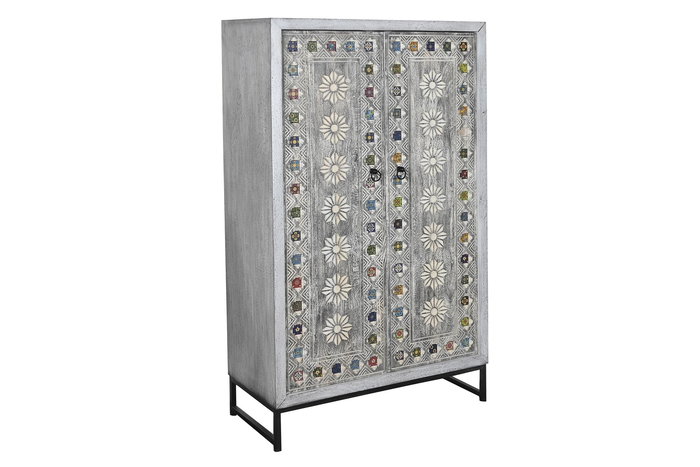 DKD Home Decor Armario Blanco Gris Mango Mango 38 x 150 x 90 cm