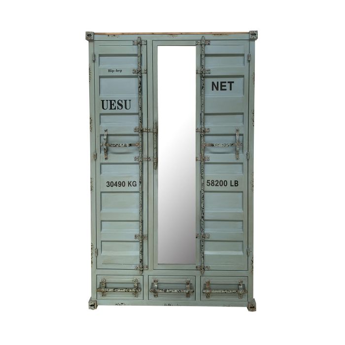 DKD Home Decor Armario Vintage Azul Celeste Metal Container 112 x 46 x 174 cm con 3 Cajones y 2 Puertas