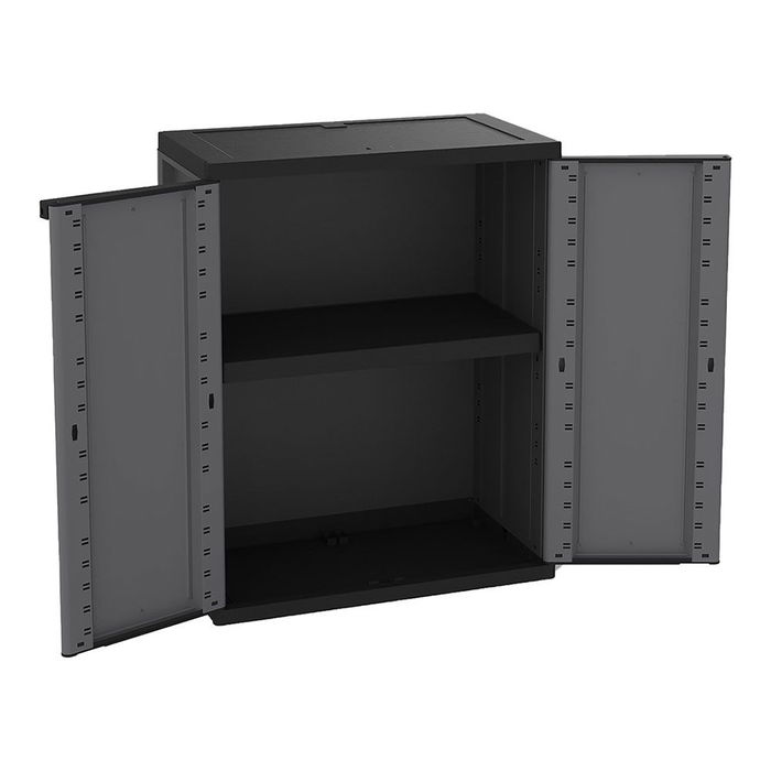 Armario j-base 68, fabricado en polipropileno. color gris oscuro, 1 baldas regulables en altura, posibilidad de cierre con candado. medida 68 x 37,5 x 85 cm