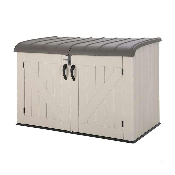 Baúl exterior horizontal con puertas y techo abatibles LIFETIME. Paneles rígidos de doble capa y techo de polietileno de alta densidad con protección UV, bisagras de acero resistente a la intemperie. Medida exterior 190x106x131 cm, interior 180,5x98,5x122,5 cm, capacidad total 2123 L. Puertas con tiradores y cierre para candado. Ideal para exterior e interior, guarda las bicis, leña, cajas...