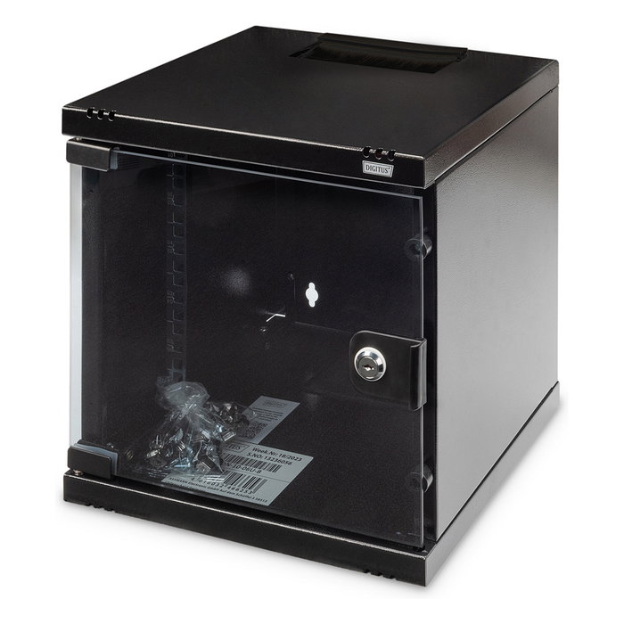 Digitus Carcasa mural 254 mm (10") - 312x300 mm (AnxP), Bastidor de pared, 6U, 30 kg, Bloqueo del teclado, 5,33 kg, Negro