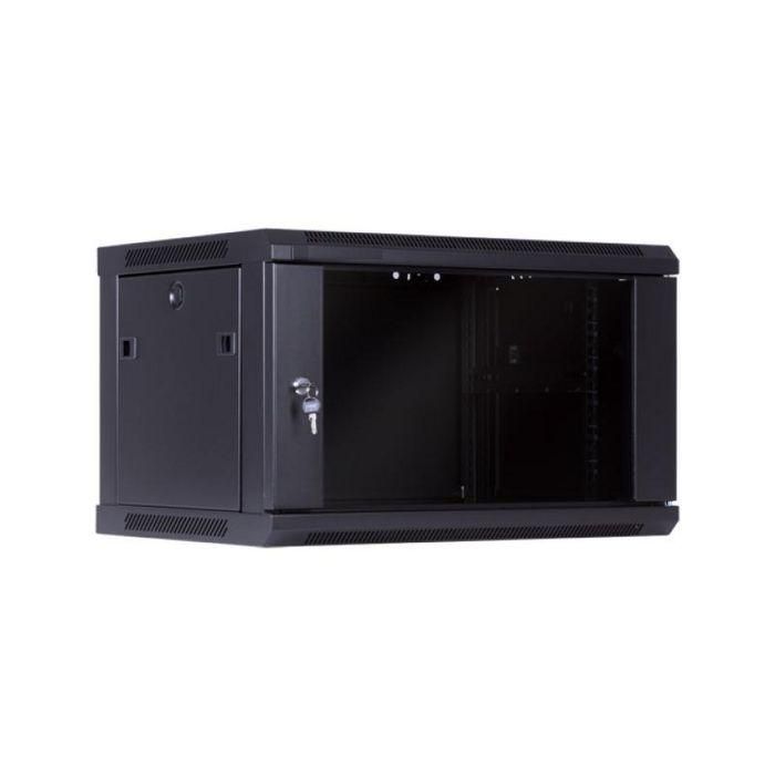 MicroConnect Armario mural de 19" 6HU, Fondo 450mm, Negro, de acero con puerta de cristal templado. Montado.