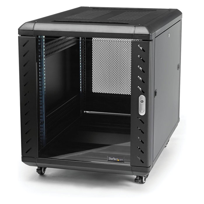 StarTech.com Armario Rack para Servidores 12U 19" 4 Columnas - Rack de Servidores con Cerradura y Seguro - Rack con Ruedas y Carriles de Montaje Ajustables para Equipo de Red, Rack o bastidor independiente, 12U, 800 kg, Bloqueo del teclado, Rueda de reenvio, 43,5 kg