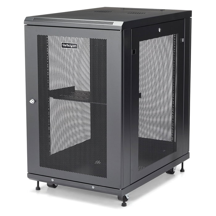 StarTech.com Armario Rack para Servidores 18U 19" 4 Columnas - Rack de Servidores con Cerradura y Seguro - Rack con Ruedas y Carriles de Montaje Ajustables para Equipo de Red, Rack o bastidor independiente, 18U, 450 kg, Bloqueo del teclado, Gestión de cables, Rueda de reenvio
