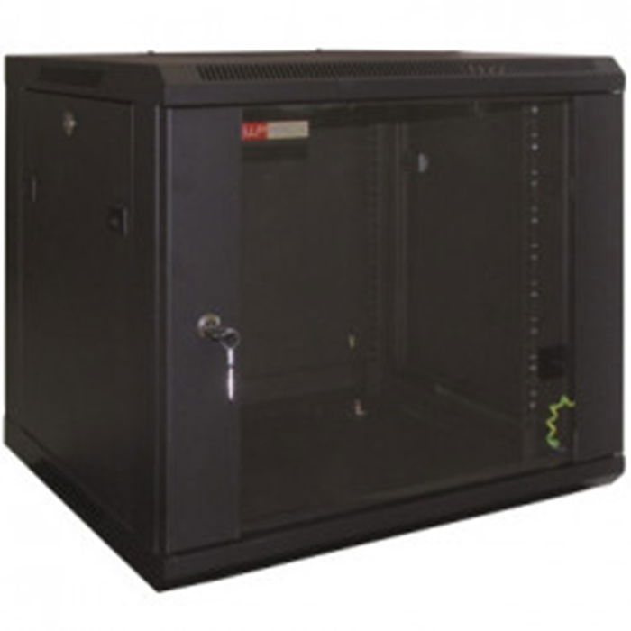 WP Armario Bastidor de Pared 19" Serie RWB, 9U, Cristal Templado, 600x600x770mm, Hasta 60kg, Color Negro