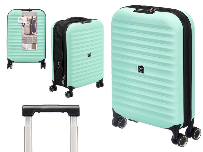 - Asa superior acolchada + 4 ruedas dobles + Candado + Carcasa exterior rigida + Refuerzos laterales de poliester 600D + Interior: Forro de poliester 210D + Base de cuero sintetico