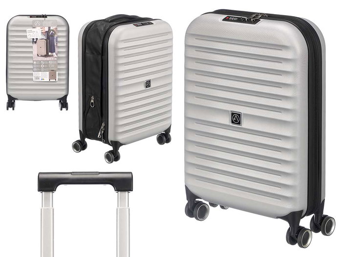 ARTE REGAL Maleta de Cabina Plegable 37L con Candado, 4 Ruedas Dobles, Rígida ABS, 40x55.5x16 cm (Abierta 40x23x103 cm), Color Plata (Set de 3)