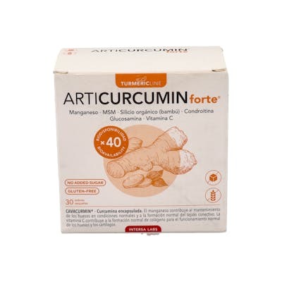 INTERSA Articurcumin Forte 30 Sobres - Cúrcuma para Articulaciones, Huesos y Cartílagos con Vitamina C y Manganeso