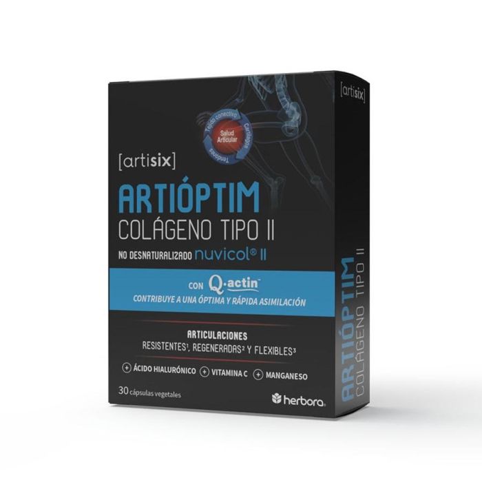 POR 1 CÁPSULA (DOSIS DIARIA): Nuvicol-II® (colágeno registrado tipo II de origen animal (pollo)): 40 mg, ácido hialurónico: 50 mg, Q-actin® ES de pepino: 20 mg, vitamina C: 160 mg (200% VRN), manganeso (gluconato): 4 mg (200% VRN).