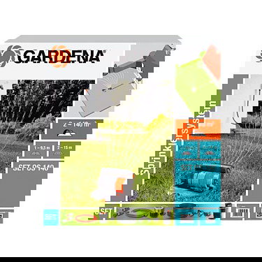 Ver todas las marcasGardena OS 140 Aspersor por Impulso de Agua, 140 m² de Cobertura, Sistema Completo con Regulador (Gris/Naranja, 12 Piezas)