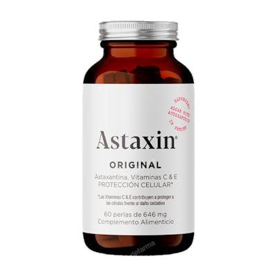 Composicion: Por perla: Aceite de girasol (cápsula), astaxantina extraído de Haematococcus pluvialis (BioREAL), vitamina C (ascorbato), vitamina E natural (d alfa tocoferol), glicerol (mono estearato), glicerol, dióxido de silicio, lecitina de soja, oxido de hierro E172 como colorante.