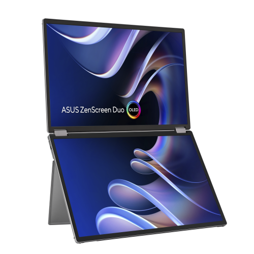 ASUS ZenScreen Duo OLED MQ149CD. Diagonal de la pantalla: 35,6 cm (14"), Resolución de la pantalla: 1920 x 1200 Pixeles, Tipo HD: WUXGA, Tecnología de visualización: OLED, Superficie de la pantalla: Brillo, Tiempo de respuesta: 1 ms, Relación de aspecto nativa: 16:10, Ángulo de visión, horizontal: 176°, Ángulo de visión, vertical: 176°. Color del producto: Plata
