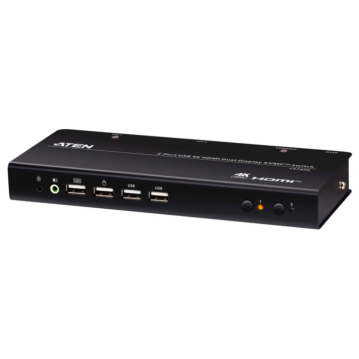 ATEN Conmutador KVMP de doble monitor con 2 puertos USB 4K HDMI (cables incluidos), 5120 x 1440 Pixeles, Dual QHD, 3,63 W, Negro