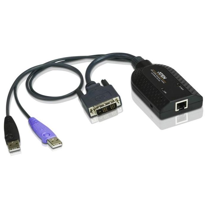 ATEN Adaptador KVM DVI USB compatible Smart Card con Virtual Media, USB, USB, DVI-D, Negro, Púrpura, RJ-45, 1 x RJ-45
