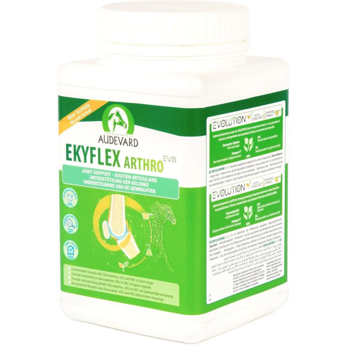 Audevard Ekyflex Arthro Evo es un suplemento nutricional de 900 gramos diseñado para el cuidado articular de los caballos. Formulado por Audevard, este producto se enfoca en el bienestar y la movilidad de tu caballo.