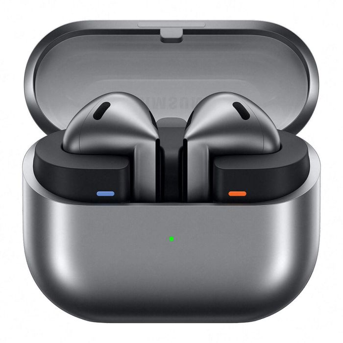 Los auriculares Bluetooth Galaxy Buds3 de Samsung son un dispositivo de audio inalámbrico diseñado para ofrecer una experiencia sonora avanzada y cómoda. Destacan por su conectividad Bluetooth que permite una conexión estable y sin cables con smartphones y otros dispositivos compatibles, facilitando la movilidad y el uso diario sin restricciones. Incorporan tecnología de cancelación activa de ruido, lo que reduce significativamente el ruido ambiental para que el usuario pueda disfrutar de un sonido más puro y definido, ideal tanto para llamadas como para escuchar música en ambientes ruidosos. Su diseño incluye materiales de plástico resistente que aseguran ligereza y durabilidad, mientras que los auriculares presentan un acabado en color gris y plateado, que aporta un toque moderno y sobrio. Cuentan con micrófono integrado, optimizando la calidad de las llamadas y la interacción con asistentes de voz. Para la carga y conexión por cable, estos auriculares utilizan un puerto de USB-C, que facilita una transferencia rápida de energía y compatibilidad con cargadores actuales. Su formato compacto ofrece un uso cómodo durante largos periodos sin provocar molestias, siendo una opción práctica para usuarios tanto en entornos profesionales como recreativos. Los Galaxy Buds3 combinan tecnología inalámbrica avanzada y un diseño cuidado, situándose como una alternativa competitiva dentro del segmento de auriculares Bluetooth con funciones de cancelación de ruido. Un modelo idóneo para quienes valoran calidad sonora, autonomía y confort en un producto accesible y versátil.
