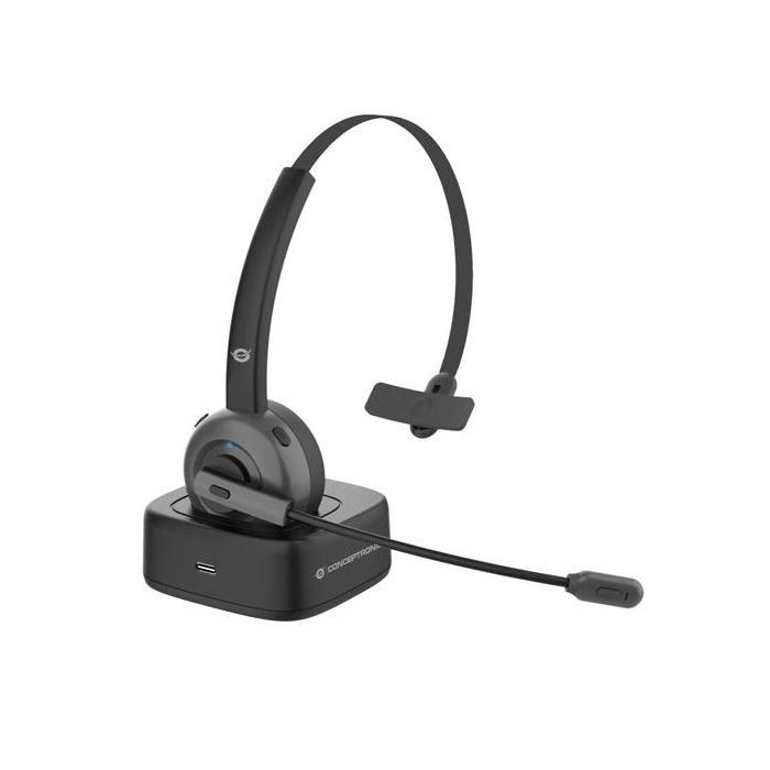 Conceptronic POLONA03 Auriculares Bluetooth con Base de Carga, Cancelación de Ruido, Micrófono Flexible, 22 Horas Batería, Comodidad Ligera