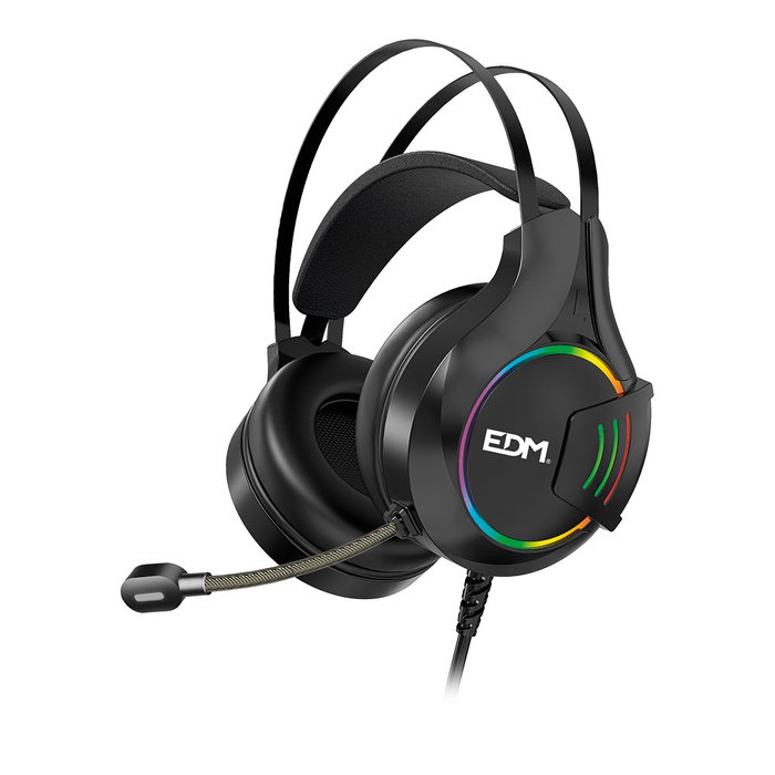 Auriculares gaming edm for players. conexión por cable de 180cm. comunicación clara y fluida. micrófono flexible ajustable de alta calidad, filtro de ruido cómodo y eficaz, cubreorejas grandes de cuero. iluminación rgb con diferentes efectos luminosos. materiales y diseño ergonómicos, muy ligeros. negro. conector usb a+ 2xminijack 3,5 ¡escucha el sonido de la victoria!