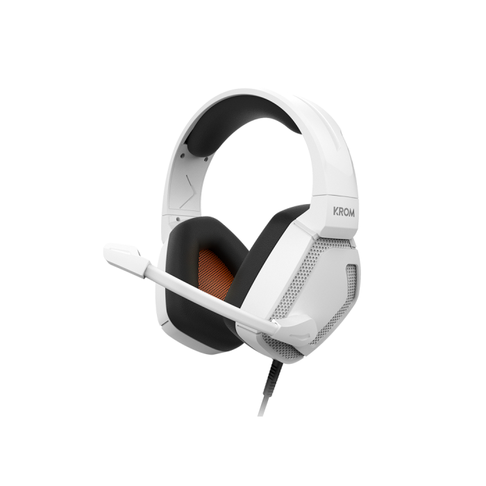 KROM Auriculares Gaming Alámbrico Diadema Kopa PRO Blanco Micrófono Omnidireccional Sonido Estéreo 50mm Compatibilidad Multiplataforma