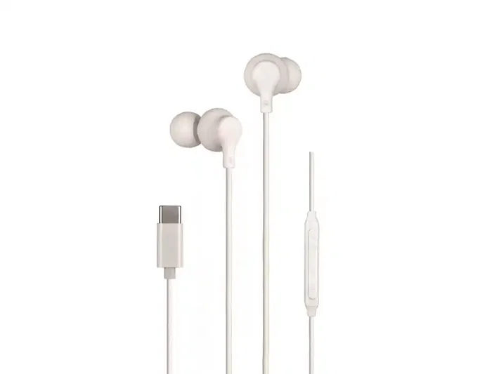 DAEWOO Auricular In-Ear con Cable Tipo C Blanco, Micrófono y Control de Volumen, Compatible con iOS y Android