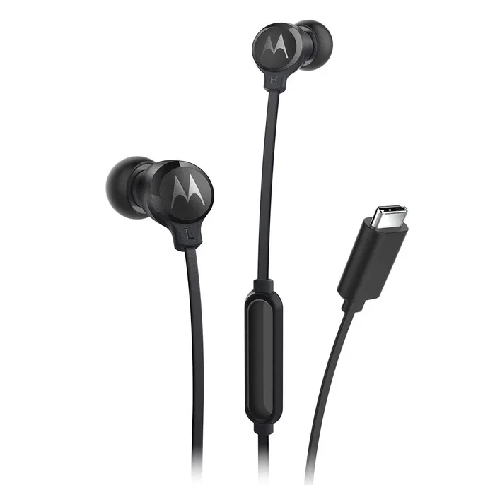 Motorola Earbuds 3C-S - Auriculares Inalámbricos Intraurales USB-C con Cable Plano, Control en Línea, Micrófono y Rich Bass - Negro
