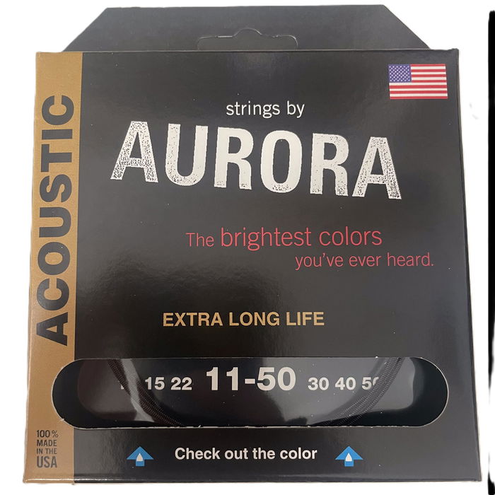 AURORA STRINGS Cuerdas Acústica Aurora Black 11-50 Phos Bronze/Silver Phos Bronze Recubiertas Suave Tono Cálido Nítido Hechas en USA