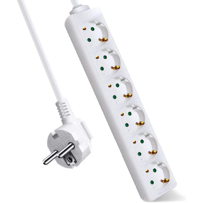 Base múltiple AVANT con 6 tomas y longitud de cable de 1.5 metros. Color blanco. Está certificada con el sello 3G y fabricada con cable de sección de 1.5 mm2. Modelo MAX3680W. Producto de la marca AVANT CONNECT.