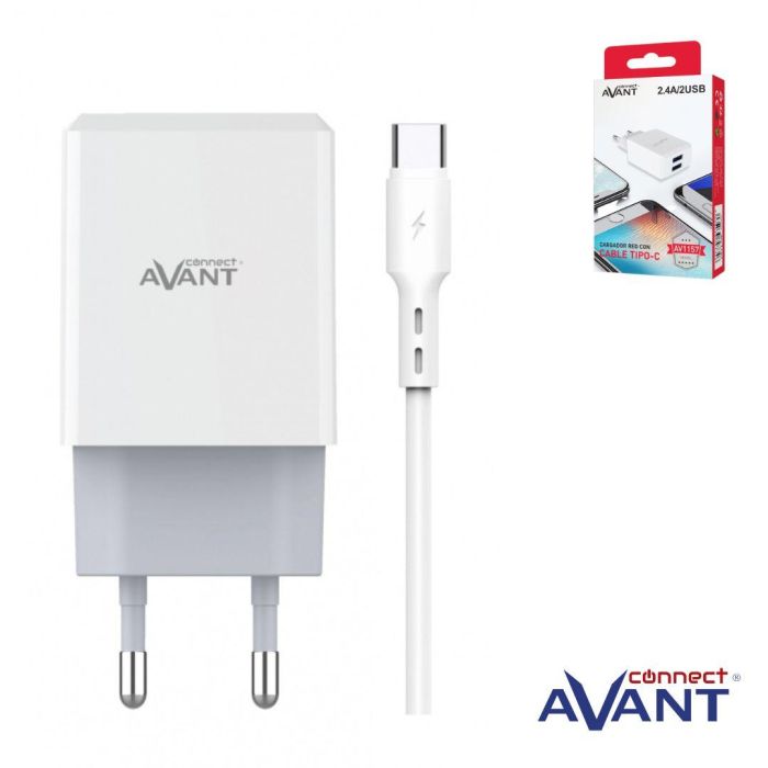 Cargador Avant USB 2.4A - 2 Puertos + Cable Tipo C