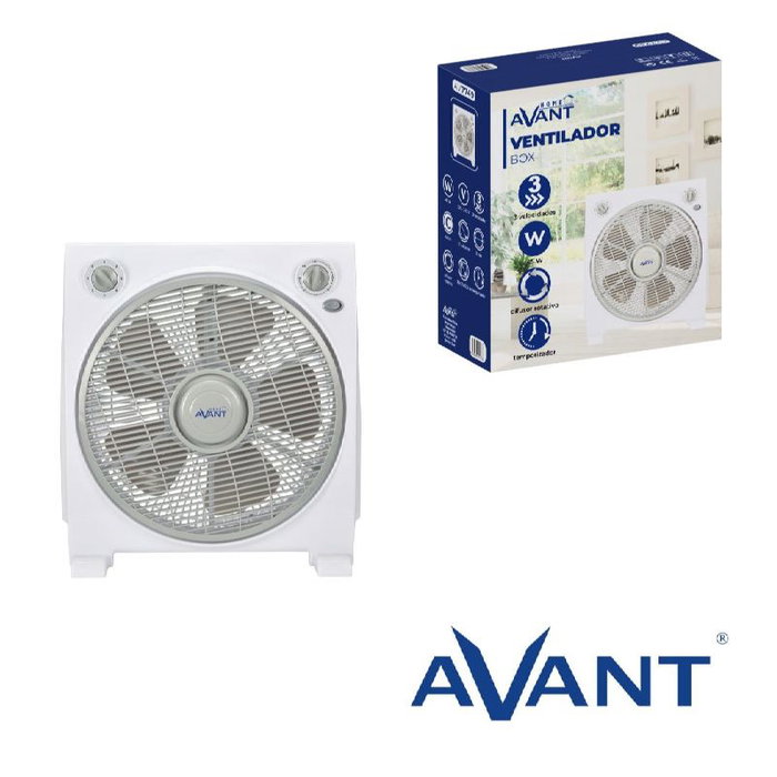 El Ventilador Box Avant 30 cm y 40 W es un electrodoméstico de la reconocida marca Avant, diseñado para ofrecer una circulación de aire eficiente. Este modelo específico cuenta con unas dimensiones de 30 centímetros y una potencia de 40 vatios. Su diseño tipo 'box' lo convierte en una solución práctica para refrescar espacios interiores de manera uniforme. Ideal para uso doméstico o en oficinas, proporciona una ventilación potente y fiable.