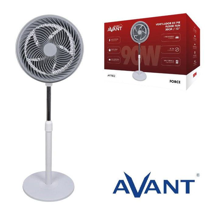 Ventilador AVANT Force de 90 W con hélice de 12" (30 cm) y base redonda. Perfecto para proporcionar una refrescante brisa en cualquier espacio del hogar u oficina.