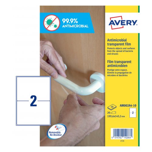 Etiquetas Adh.Avery A4 Polyester Antibacteriana Y Antimicrobiana Removible Caja 10H 199,6X143,5 Mm 20 Uds.(Am002A4)