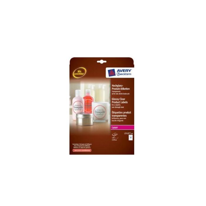 Avery Etiquetas Adhesivas Brillantes Invisibles Redondas Láser 60 mm Caja 120 Unidades