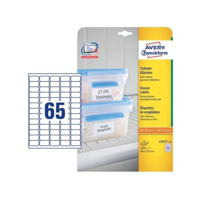 Avery Etiquetas Adhesivas Mini 38,1x21,1 mm Inkjet-Láser Para Congelador 65 X 25H Blanco -40°C a +70°C