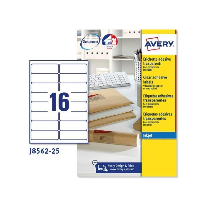 Avery Etiquetas Adhesivas Para Sobres C-Romos 99,1x33,9 mm Inkjet Transparente 16 X 25H