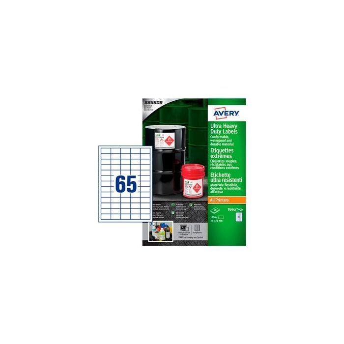 Avery Etiquetas Ultra Resistentes 38x21,2 mm, Inkjet-Láser, Blanco, 3.250 etiquetas, Resistentes a químicos y temperaturas extremas