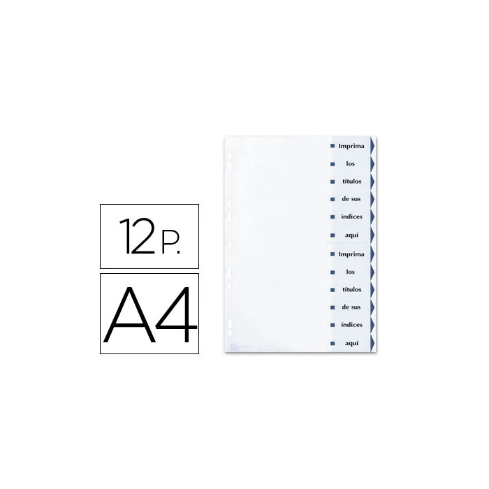 Avery Índices Separadores 12 Pestañas Personalizadas Index Maker Sin Agujeros 222x297 mm Blanco