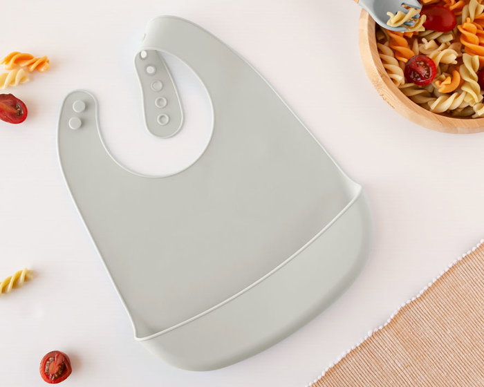 Los baberos son un must de toda familia con peques y si son blanditos e impermeables como este, mejor. este en concreto está fabricado 100% en silicona por lo que ofrece todas las ventajas de este material: · es impermeable. · se limpia fácilmente con un paño húmedo, o jabón. · es ajustable en el cuello (7 posiciones). · es blandito por lo que resulta muy cómodo para el bebé. · también hace muy fácil el transporte pues se puede enrollar sobre sí mismo, ocupando muy poco espacio. · incluye un bolsillo recogemigas para que no se pierdan por la trona o el suelo los trocitos de comida o las gotas. · no se ve alterado ni el color ni la forma. - está recomendado para +4 meses. - material: silicona