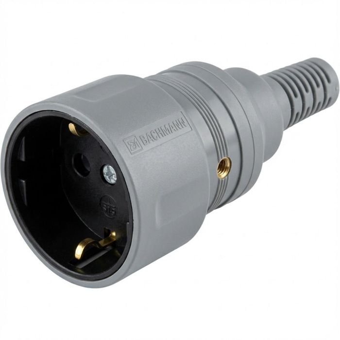 Bachmann Schutzkontaktkupplung grau montierbar mit Knickschutztülle