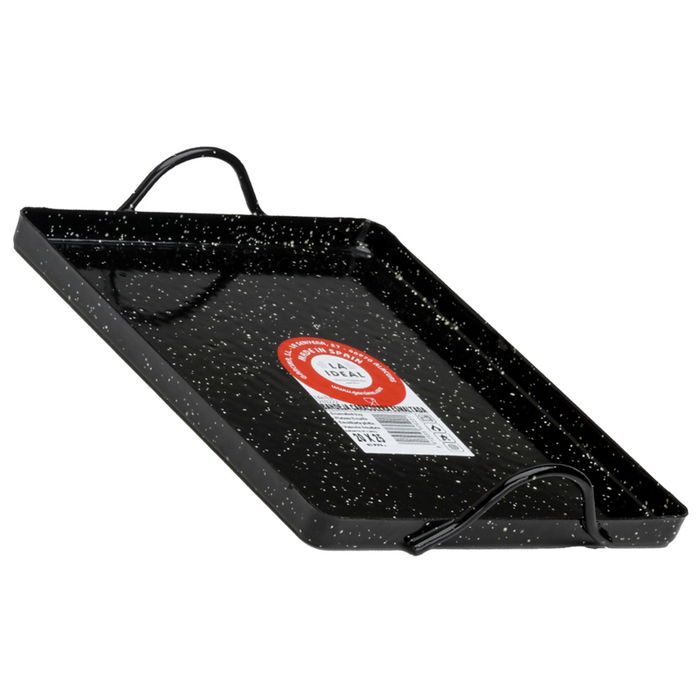 - Bandeja horno LA IDEAL con 2 asas con esmalte vitrificado antiácido.