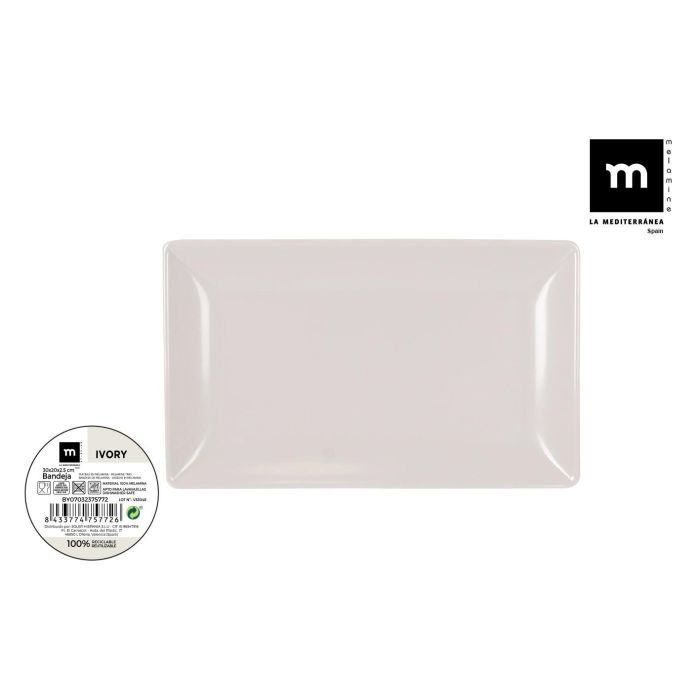La Mediterranea Bandeja Melamina Ivory 30 cm x 20 cm x 2.5 cm (12 Unidades)