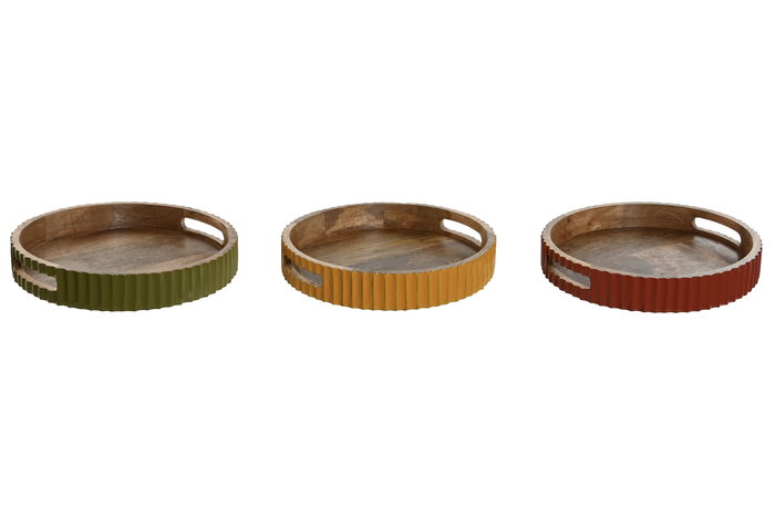 DKD Home Decor Sai white 23 Bandeja Colonial Verde Amarillo Mango 30 x 5 x 30 cm (3 Unidades)
