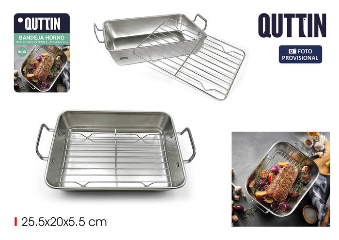 Quttin Bandeja Horno Acero C/Grill 25.5 x 20 cm (12 Unidades)