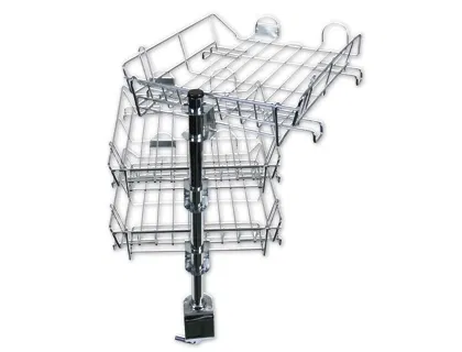 Set de 3 bandejas metálicas con soporte giratorio cromado, giro de 360º. Medidas: 275 x 90 x 370 mm.