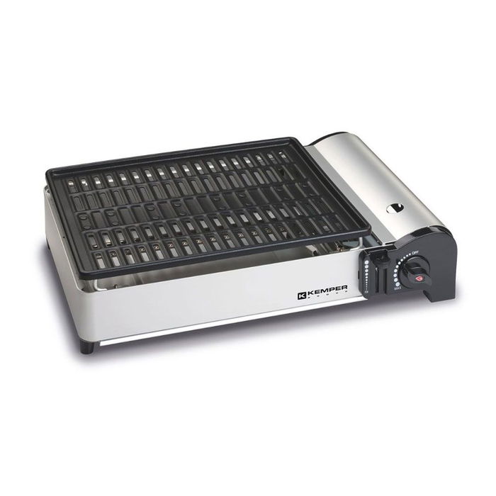 Kemper Barbacoa Portátil a Gas Butano para Camping, 1.9 kW, Encendido Piezoeléctrico, Parrilla de Aluminio Antiadherente 27x34 cm, Saco de Transporte, 45 x 32 x 9 cm