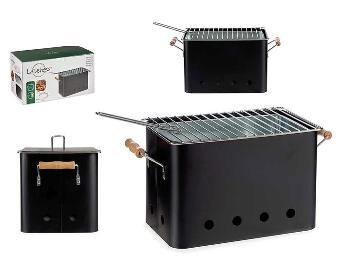 BARBACOA PORTATIL RECTANGULAR CON ASAS COLOR NEGRO