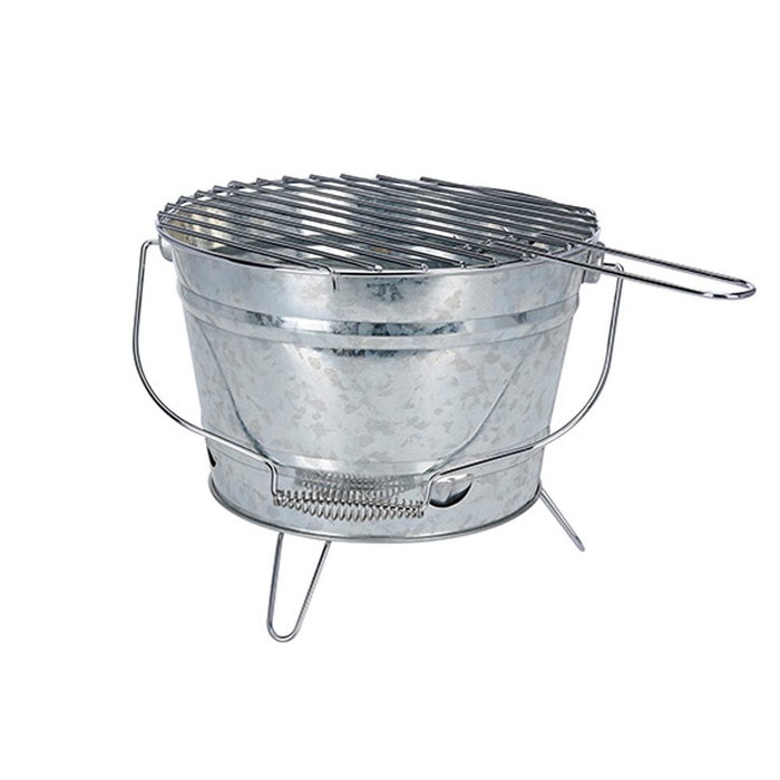Barbacoa zinc barril. con parrilla de ø27cm. modelo cubo con asa. parrilla cromada. 3 pies plegables cromados. diámetro inferior 17cm. peso del producto: 1463g. bbq