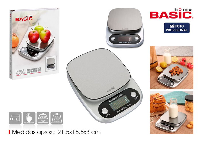 Inde Báscula de Cocina Digital 10 kg con Dimensiones 21.5x15.5x3 cm (12 Unidades)