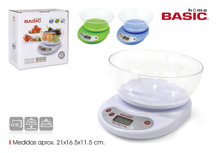 Bascula Cocina Digital 5Kg C/Bol Basic H