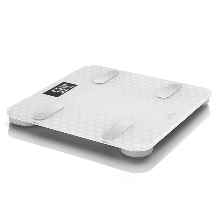 Bascula bluetooth y calculo de la composición corporal smart color blanco 180kg laica. bascula electronica smart con calculo de la composición corporal. analiza: peso corporal, % grasa corporal, % musculo, % agua, indice de masa corporal, metabolismo basal. envía automaticamente datos de composición corporal a su telefono inteligente. compatible con tecnologia bluetooth 4.0 o superior. descarga la aplicación gratuita laica home wellness para memorizar y monitorizar datos directamente en tu smartphone. funciona con 2xaaa no incluidas. numero de usuarios ilimitado. pantalla lcd. peso máximo 180kg con divisiones de 100g. material: vidrio templado.